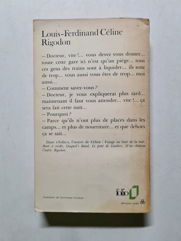 Rigodon est publié en février 1969, soit plus de sept ans après la mort de l’écrivain. Lucette Destouches, Maître Damien et Maître Gibault, effectuent le difficile travail de déchiffrement du manuscrit non recopié laissé par Céline. NEUF.