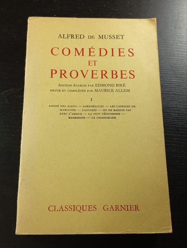 L'Edition D'Art Henri Piazza Paris 1932-1936 12 volumes in-12 ( 190 X 135 mm ) de II-8575 /// I. 291-( 1f. ) / II. 276-( 2f. ) / III. 332-( 1f. ) / IV. 285-( 3f. ) / V. 225-( 2f. ) / VI. 222-( 3f. ) / VII. 264-( 4f. ) / VIII. 260-( 3f. ) / IX. 274-( 2f. ) / X. 302-( 2f. ) / XI. 261-( 2f. ) / XII. 398-( 2f. ), demi-maroquin mandarine à long grain à coins, dos à 4 nerfs joliment ornés de filets et fleurons dorés, pièces d'auteur et de titre de maroquin olive, têtes dorées, couvertures et dos conservés. 309 illustrations en couleurs dont 12 frontispices pleine page d'André-Édouard MARTY gravés sur bois par E. GASPERINI. Tirage à 2250 exemplaires, celui-ci un des 50 du tirage de tête numérotés sur Japon impérial contenant une suite en couleurs et une suite en noir ( N° 44 ). Très bel exemplaire, finement relié.* Tome I: Poésies I - Contes d'Espagne et d'Italie Poésies diverses. * Tome II: Poésies II - Un spectacle dans un fauteuil Poésies nouvelles. * Tome III: Poésies III - Poésies nouvelles ( suite et fin ). * Tome IV: Comédies et Proverbes I - André del Sarto Lorenzaccio. * Tome V: Comédies et Proverbes II - Les caprices de Marianne Fantasio On ne badine pas avec l'amour. * Tome VI: Comédies et Proverbes III - La nuit vénitienne Barberine Le chandelier. * Tome VII: Comédies et Proverbes IV - Il ne faut jurer de rien Un caprice Il faut qu'une porte soit ouverte ou fermée Louison. * Tome VIII: Comédies et Proverbes V - On ne saurait penser à tout Carmosine Bettine. * Tome IX: Nouvelles et Contes I - Emmeline Les deux maitresses Frédéric et Bernerette. * Tome X: Nouvelles et Contes II - Le fils du Titien Margot Croisilles Pierre et Camille. * Tome XI: Nouvelles et Contes III - Le secret de Javotte Histoire d'un merle blanc Mimi Pinson La mouche. * Tome XII: La confession d'un enfant du siècle.