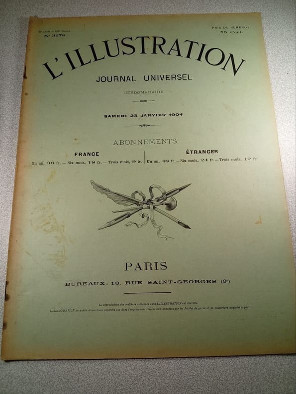 Au bureau du journal. 23 janvier 1904. In-Folio. Broché. Bon état, Couv. convenable, Dos satisfaisant, Intérieur frais. 16 pages environ illustrées de nombreuses gravures en noir et blanc - Paginées de 50 à 64 - avec couverture et pages publicitaires.. . . . Classification Dewey : 70.4417-L'illustration / Figaro salon
