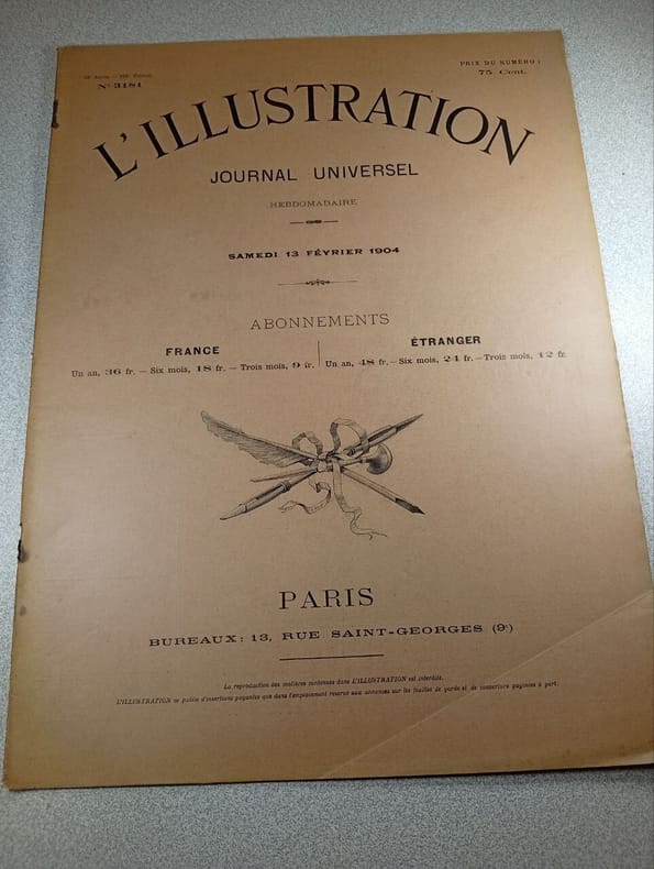 Au bureau du journal. 13 fevrier 1904. In-Folio. Broché. Bon état, Couv. convenable, Dos satisfaisant, Intérieur frais. 16 pages environ illustrées de nombreuses gravures en noir et blanc - Paginées de 98 à 112 - avec couverture et pages publicitaires.. . . . Classification Dewey : 70.4417-L'illustration / Figaro salon