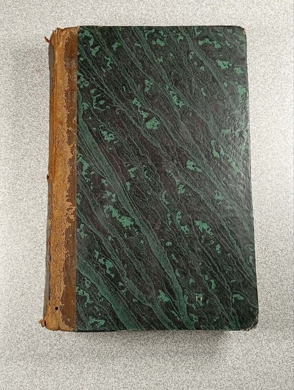 MONTARSOLO A. ET CIE. 1827. In-12. Relié plein cuir. Etat d'usage, Coins frottés, Dos frotté, Intérieur acceptable. 405 + 420 pages - Titre, filets et tomaison dorés sur pieces de titre bordeaux et noir - Filrts, roulettes et fleurons dorés au dos - plats et contre-plats jaspés - Signets conservés - Manque les 2e contre-plats en debut et fin d'ouvrage - epidermures sur les plats et dos.. . . . Classification Dewey : 260-Théologie sociale chrétienne