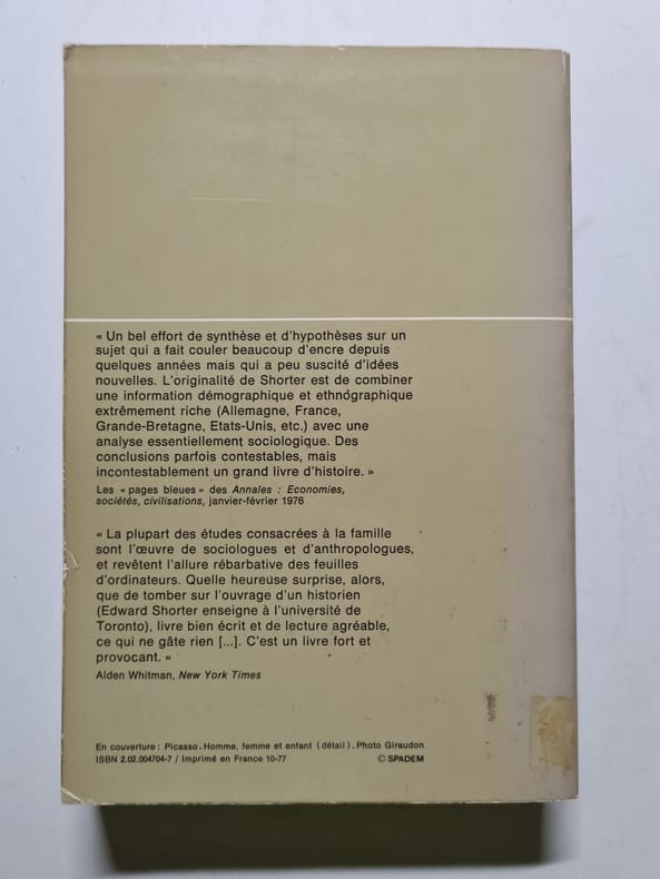 Seuil. 1981. In-12. Broché. Etat d'usage, Couv. légèrement passée, Dos plié, Intérieur acceptable. 379 pages. Tampon en page de faux titre.. . . . Classification Dewey : 306.8-Mariage et famille