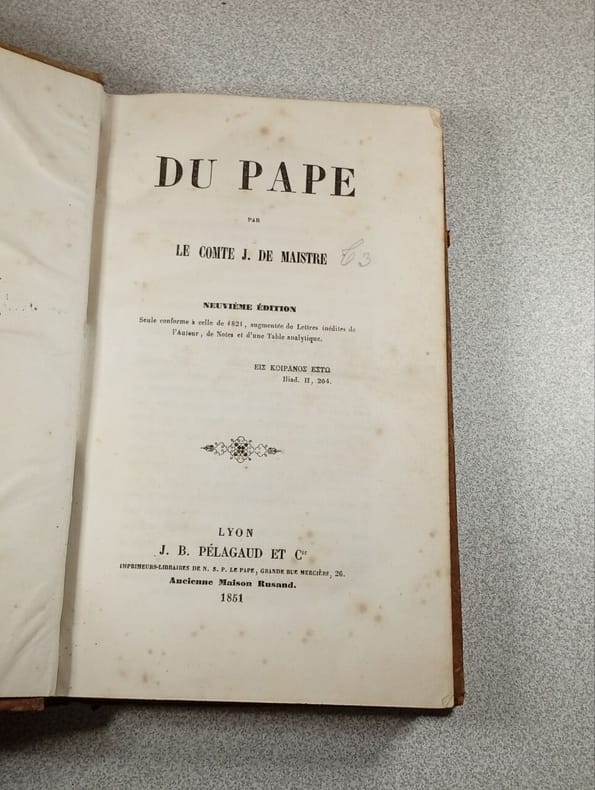 A Paris, chez L. G. Michaud, imprimeur du roi, rue des bons-enfants, n° 34 Relié 1816 "In-8 (13,8 x 21,6 cm), reliure demi-peau, dos lisse orné de filets dorés, 211 pages, titre complet : ""Le Concordat expliqué au Rois suivant la doctrine de l'Eglise, et les réclamations canoniques des évêques légitimes de France ; suivi du Précis historique de l'Enlèvement de N.T.S.P. le Pape, Pie VII ; de ses souffrances, de son courage, et des principaux événements de sa captivité"". Ouvrage concernant le concordat de 1801 critiquant fortement l'article 13, saisi par la police en août 1816 (avec ici une copie manuscrite du jugement du tribunal de police correctionnelle : ""Tribunal de police constitutionnelle. Jugement. Attendu qu'aux pages 18, 73, 79, 81, 92, 93, 94, 102 et 128 - le Sr abbé Vinson sans égard à l'art. 9 de la charte constitutionnelle et à l'article 13 du Concordat a qualifié de pillage et de vol manifeste la vente des domaines nationaux, les possesseurs des voleurs sacrilèges (?)... s'est rendu coupable des provocations indirectes prévues par l'article 8 loi de 9... 1815. Attendu qu'à la page 90, il blame la conduite tenue par N.S.P. Le Pape et par le corps de l'Eglise gallicane qu'il désigne sous le nom de Concordataire et qualifie de schismatique, qu'en cela il a manqué du respect au Roi... Supprime l'ouvrage intitulé ""Concordat espliqué au Roi... Condamne le Sr abbé Vinson à trois mois d'emprisonnemen... Condamne en outre à 50 [...?] d'amende et sera pendant 2 ans (?) sous la surveiillance de la [...?] condamne aux dépens... Me (?), avocat du Roi ; Me Roussiale, av. du prévenu"") ; coins et coiffes légèrement frottés, quelques rousseurs, bon état général. Livraison a domicile (La Poste) ou en Mondial Relay sur simple demande."