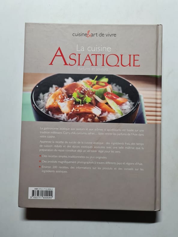Paaris, Flammarion, 2004, Première Edition française, in-4, cartonnage couv. photo coul. éd., jaquette à l'identique, 128 pp., papier glacéé, très nb. photos coul. de Jean Cazals, Sommaire, Menus, Index, L'auteur, chef superstar de la cuisine asiatique nous donne dans ce livre 40 de ses meilleures recettes expliquées pass à pas. Une cuisine à "déguster" aussi bien avec les yeux, la langue qu'avec le nez ! Bonne introduction sur les produits et épices de base de ce type de cuisine. Pas courant. Très bon état