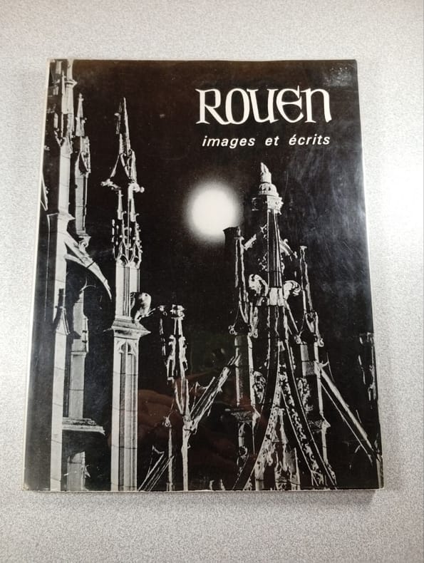 Rouen, Imprimerie Rouennaise, reliure pleine toile éditeur bleu, 23x31 cm, 86 pages, choix des textes et commentaires de René Rouault de la Vigne, Maquette et illustrations : Jean Marc IMRO.