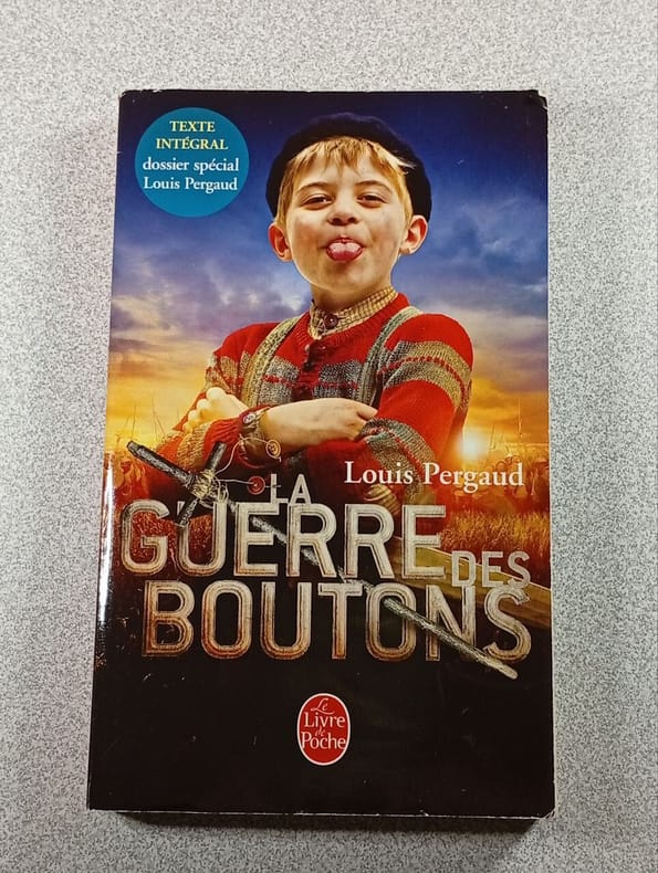 La Guerre des boutons est un roman français écrit par Louis Pergaud, écrivain franc-comtois, et publié en 1912. Il décrit la « guerre » que se livrent les bandes d'enfants de deux villages rivaux, Longeverne et Velrans, dans la campagne franc-comtoise de la fin du XIXe siècle. L'auteur s'est inspiré de la vie dans le village de Landresse, dans le département du Doubs, où il a enseigné deux ans. Le titre vient du butin de cette guerre, constitué en majorité par les boutons dont les vaincus sont dépouillés par les vainqueurs. Le récit, pour la plus grande partie, raconte l'histoire du point de vue des enfants de Longeverne. Louis Pergaud remporta le prix Goncourt avec De Goupil à Margot, Histoire de bêtes en 1910, mais c'est avec La Guerre des boutons qu'il rencontra le succès. Il fut tué près de Marchéville (dans les environs de Verdun) le 4 avril 1915. Insolation au dos et légères usures et salissures à l'étui.