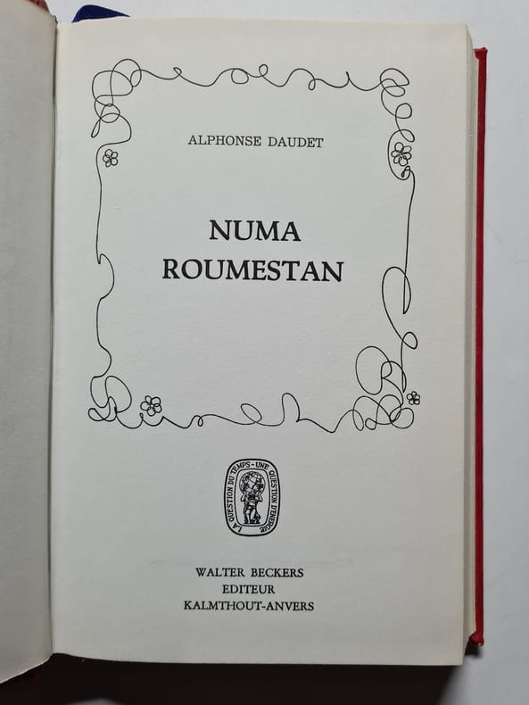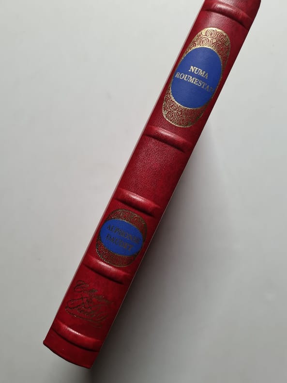 Numa Roumestan est un roman antiméridionaliste d’Alphonse Daudet publié en 1881, mettant en scène un personnage du nom de Numa Roumestan. Il a été porté en pièce de théâtre en 1887 à l’Odéon de Paris. Aux arènes d'Aps-en-Provence, la foule applaudit Numa Roumestan. À quarante-trois ans, devenu un homme politique en vue, il est de retour au pays avec sa femme Rosalie, déconcertée puis charmée par la couleur locale. Numa, vingt ans plus tôt, faisait son droit à Paris, financé par un cabaretier qui spéculait sur ses talents prometteurs... vol relié in12, 150x100, très bel état intérieur, 406pp. Tranche de tête dorée à l'or fin. Paris, Alphonse Lemerre, 1886 ref/152