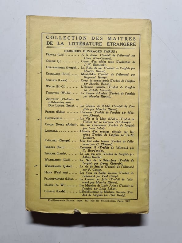 Livre. Roman. Traduit de l'italien par la Comtesse Filippi de Baldissero. Editions Albin Michel (Collection : Maîtres de la littérature étrangère), 1936.