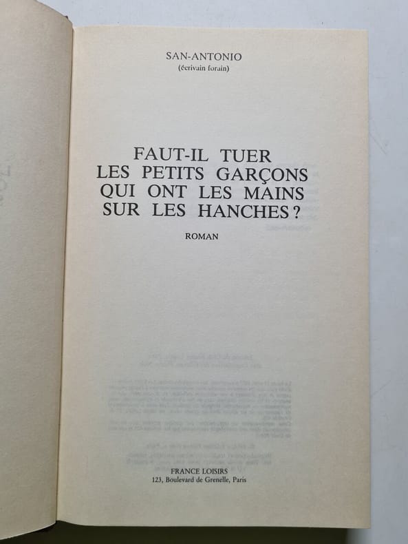 FRANCE LOISIRS / FLEUVE NOIR. 1985. In-8. Relié. Bon état, Couv. convenable, Dos satisfaisant, Intérieur frais. 323 pages.. . . . Classification Dewey : 843.0875-Sanantonio