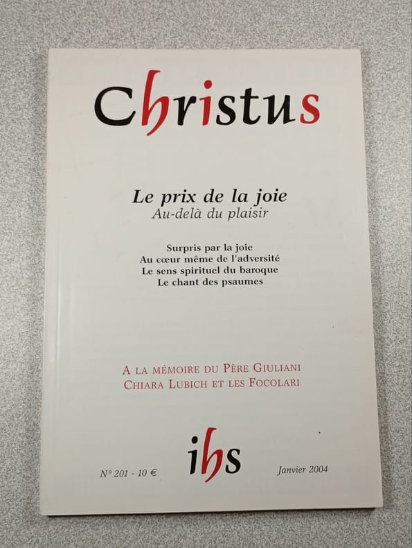 Christus. Janvier 2004. In-12. Broché. Bon état, Couv. convenable, Dos satisfaisant, Intérieur frais. Paginé de 1 à 125.. . . . Classification Dewey : 248-Vie chrétienne et méditations