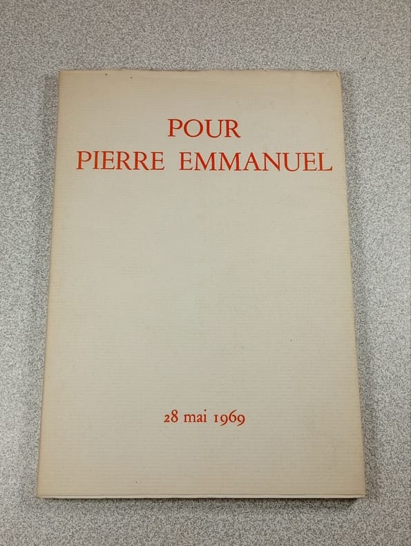 Alger Editions du Seuil 1969 in 8 (20,5x14) 1 volume broché, jaquette titrée, 72 pages [3]. Renferme 3 discours ( Bertrand d'Astorg, Louis Joxes, Pïerre Emmanuel ), et à la suite une liste des donateurs. Pierre Emmanuel, pseudonyme de Noël Mathieu, Gan 1916 - Paris 1984, poète français. Edition originale sur papier ordinaire. Bel exemplaire ( Photographies sur demande / We can send pictures of this book on simple request )