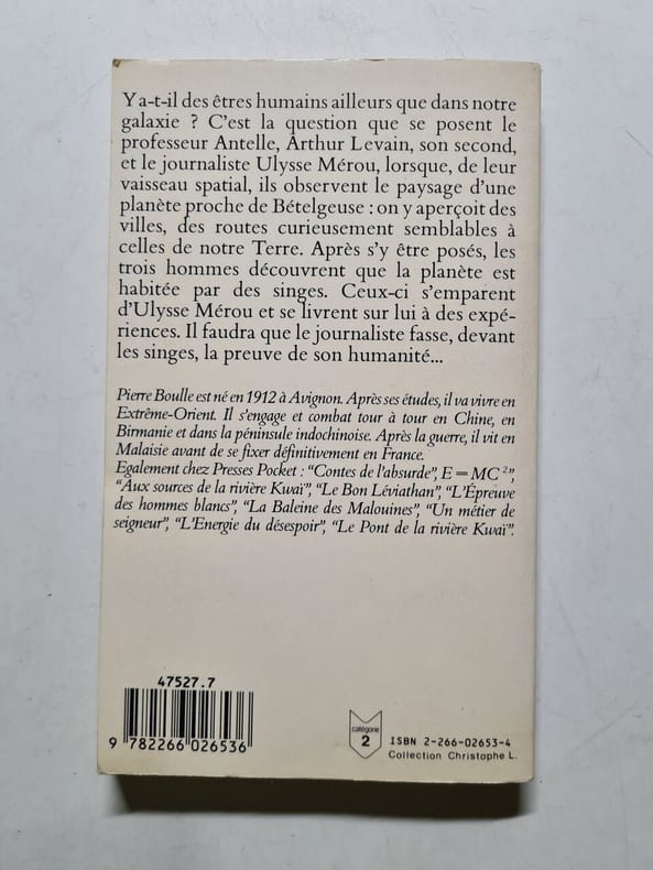 Édition originale dans le commerce, un des 50 exemplaires numérotés sur alfa, seuls grands papiers. Rare et très bel exemplaire tel que paru. * « Une paresse cérébrale sest emparée de nous. Plus de livres ; les romans policiers sont même devenus une fatigue intellectuelle trop grande. Plus de jeux : des réussites, à la rigueur. Même le cinéma enfantin ne nous tente plus. Pendant ce temps, les singes méditent en silence. Leur cerveau se développe dans la réflexion solitaire et ils parlent. » La Planète des singes, 1963, Pierre Boulle Le chef-duvre de lAvignonnais Pierre Boulle connaît dès sa publication, en 1963, un succès immédiat et plusieurs traductions. Il ne faudra attendre quune seule année avant que le cinéma hollywoodien ne sintéresse lui aussi au phénomène «?Boulle?». Le producteur Arthur P. Jacobs achète en 1964 les droits dadaptation du livre et quatre années plus tard sort un premier film, réalisé par Franklin Schaffner. Comme nous le rappelle Thomas Olivri dans Littérature de la pop culture, «?entre 1968 et 2017, ce court texte devenu essentiel a connu deux séries télévisées en 1974 et 1975, dinnombrables bandes dessinées et surtout neuf adaptations cinématographiques?: un premier cycle de 1968 à 1973 avec le célèbre Charlton Heston, une version de Tim Burton, et une nouvelle trilogie sensationnelle de 2011 à 2017, qui retrace lavant-Planète des singes...?». Ce texte paru en 2018 ne mentionne pas ladaptation de Wes Ball (2024), la plus récente à ce jour, qui ne sera certainement pas la dernière. Rare édition de luxe de La Planète des singes de Pierre Boulle, son chef-duvre à mi-chemin entre la science-fiction et le conte philosophique, adapté près de dix fois au cinéma depuis sa publication en 1963. - Photographies et détails sur www.Edition-Originale.com -