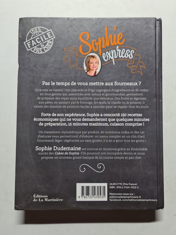 Paris, éd. de la Martinière, 2015, in-4, cartonnage couv. photo coul. et texte en blanc et orange sur fond noir éd., 316 pp., papier glacé, très nb? photos en coul., Sommaire, Index des ingrédients, Table des recettesRecettes par famille, Un livre pour ceux qui n'ont jamais le temps de préparer de bons petits plats ! 150 recettes économiques qui ne demandent que 15 minutes, cuisson comprise ! Très bonne "initiation" pour devenir, peut-être, un accroc de la cuisine ! Pas courant. Très bon état