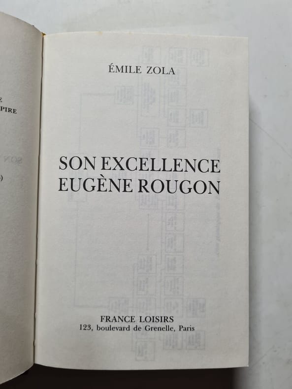 Volume 1 : La Fortune des Rougon + La Curée - Volume 2 : Le ventre de Paris tome premier + La conquête de Plassans - Volume 3 : La faute de l'Abbé Mouret + Son excellence Eugène Rougon - Volume 4 : L'Assommoir + Une page d'amour - Volume 5 : Nana tome premier + Pot-Bouille tome premier. Classification Dewey : 840.091-XX ème siècle