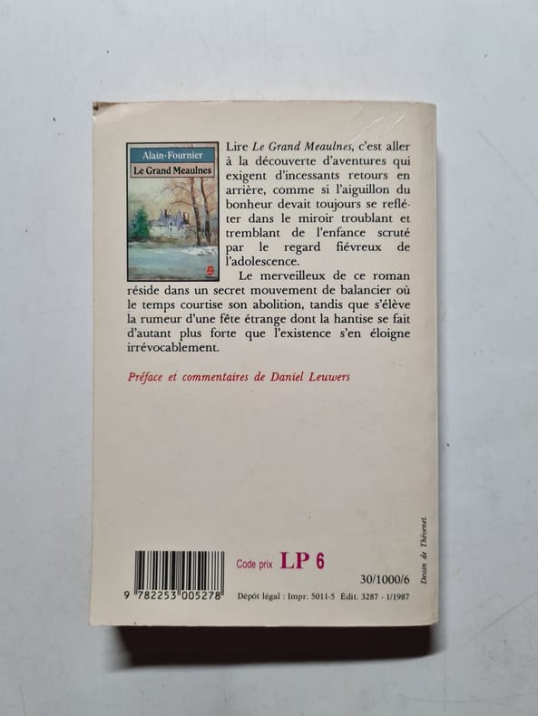 Éditions G. P Sans date. Le Grand Meaulnes raconte l'histoire d'Augustin Meaulnes un adolescent mystérieux qui arrive dans un village et bouleverse la vie du narrateur François Seurel. Le récit suit la quête obsessionnelle de Meaulnes pour retrouver un domaine enchanté et une jeune femme rencontrés lors d'une aventure onirique explorant les thèmes de l'adolescence des rêves perdus et de la nostalgie