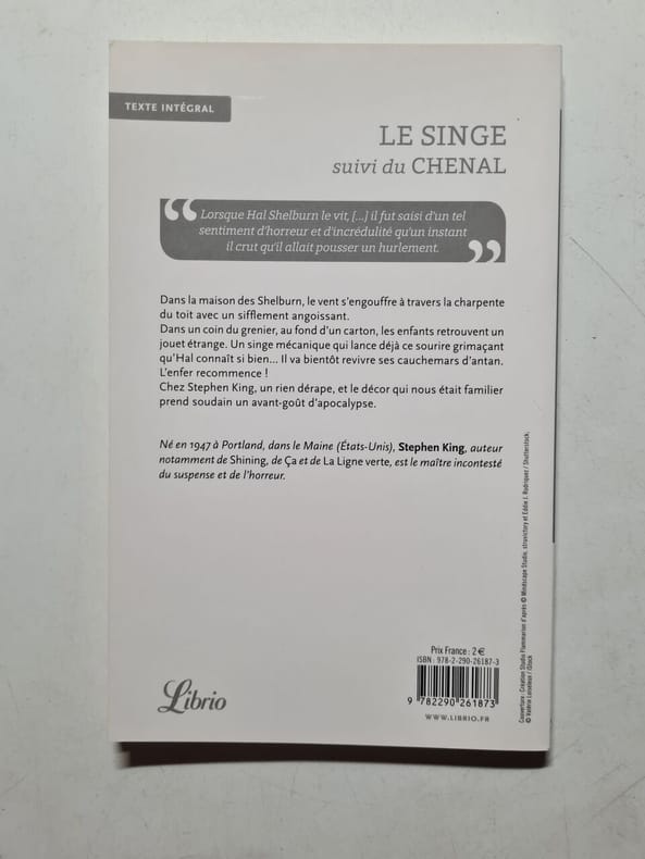 1994 1994. Stephen King: Le singe suivi de Le chenal/ Librio 1994 . Stephen King: Le singe suivi de Le chenal/ Librio 1994