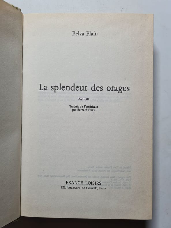 Editions France Loisirs 1984 1984. Belva Plain: La splendeur des orages/ Editions France Loisirs 1984 . Belva Plain: La splendeur des orages/ Editions France Loisirs 1984
