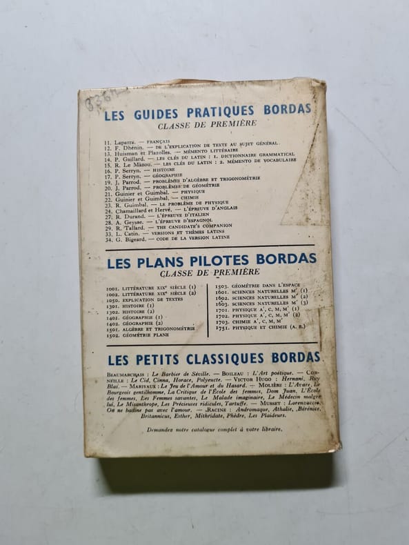 Bordas. 1960. In-12. Broché. Etat passable, Plats abîmés, Dos abîmé, Papier jauni. 598 pages - papier jauni - nombreuses figures en noir et blanc dans le texte - dos frotté, manque sur le dos - fortes rousseurs sur les plats - plats frottés.. . . . Classification Dewey : 372.7-Livre scolaire : mathématiques