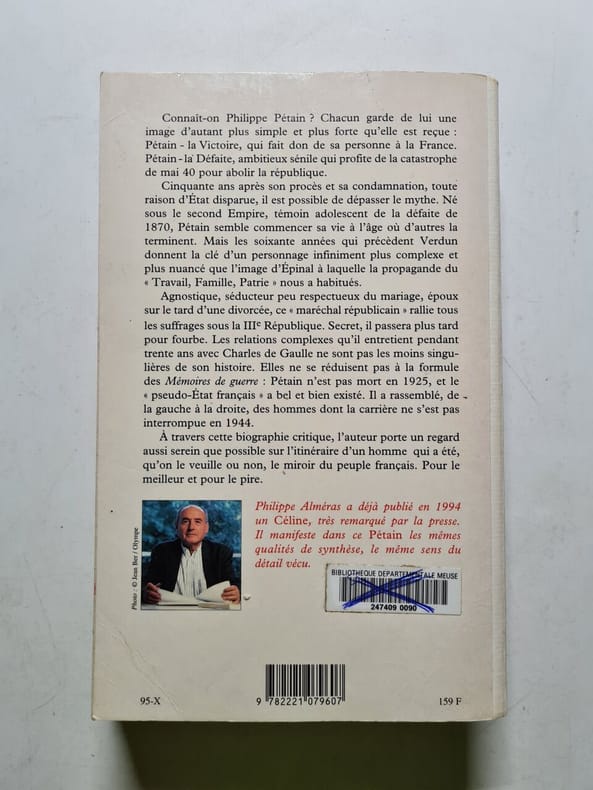 État : Bon état - Année : 1995 - Format : in 8° - Pages : 450pp - Editeur : Robert Laffont - Lieu d'édition : Paris - Type : Broché - Divers : Un pli de lecture au dos (mais ouvrage solide). Coins des plats très légèrement frottés. Intérieur bien propre. - Commander rapidement : https://www.bons-livres.fr/livre/philippe-almeras/9301-un-francais-nomme-petain?lrb