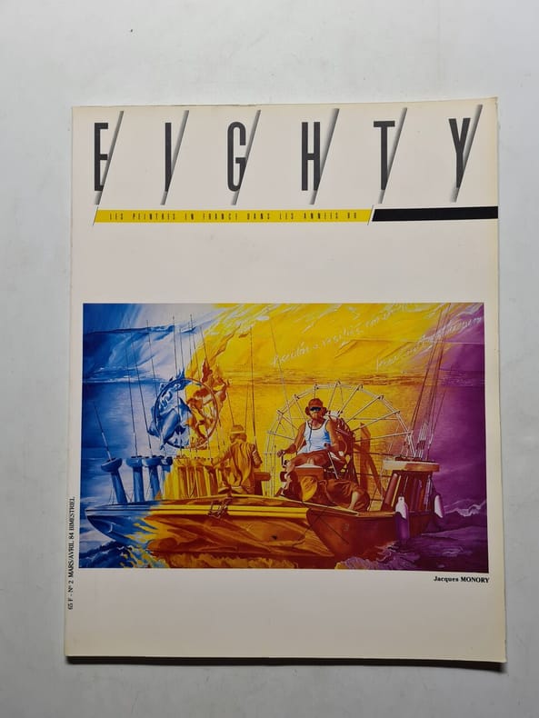 Paris Eighty Magazine 1984-1990 32 vol. broché Manquent les numéros 14 et 20. 32 vol. in-4, brochés, nombreuses reproductions en couleurs. Collection quasi complète de cette revue dirigée par Jean-Luc Flohic, chaque numéro présentant deux peintres importants de la décennie : Klasen, Monory, Hélion, Fromanger, Combas, Alberola, Dubuffet, Garouste, Raysse, Le Gac, Télémaque, Erro, Soulages, Laget, etc. On joint le numéro spécial "Sculpture des années 80" (cart. sous jaquette, 215 pp.). En très bonne condition.