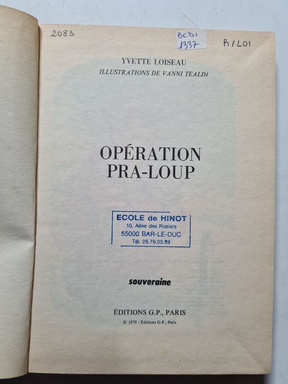 N°2825 G.P, Bibliothèque Rouge et Or, Souveraine N°2825.. 1979. In-8. Cartonnage d'éditeurs. Bon état, Couv. convenable, Dos satisfaisant, Intérieur frais. 186 pages. Couverture illustrée en couleurs. Illustrations en noir & blanc et en couleurs de Vanni tealdi. 274ème ouvrage de la Collection Souveraine. Couverture, étiquette et tampon de bibliothèque.. . . . Classification Dewey : 843.0692-Livres d'enfants