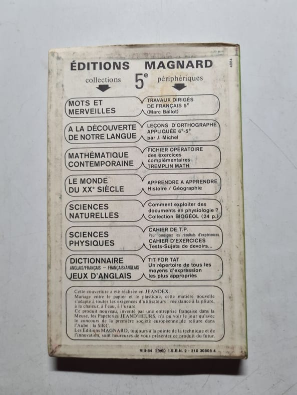 Magnard. 1985. In-12. Broché. Etat d'usage, Couv. légèrement passée, Dos satisfaisant, Intérieur frais. 223 pages; couverture cartonnée souple en couleurs.. . . . Classification Dewey : 370-Education