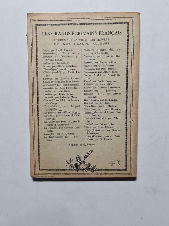 Molière, de son vrai nom Jean-Baptiste Poquelin, était un célèbre dramaturge français du XVIIe siècle. Il est surtout connu pour ses comédies satiriques et comiques qui critiquaient la société et la noblesse de son époque. "L'Avare" est une comédie de Molière en cinq actes et en prose, adaptée de La Marmite de Plaute et représentée pour la première fois sur la scène du Palais-Royal le 9 septembre 1668. Il s'agit d'une comédie de caractère dont le personnage principal, Harpagon, est caractérisé par son avarice caricaturale Commande de Louis XIV, George Dandin ou le Mari confondu est créé à Versailles le 15 juillet 1668, dans le théâtre de verdure du Petit parc, à l’occasion du Grand Divertissement royal célébrant le traité d’Aix-la-Chapelle. Pour cette comédie écrite en prose, Molière puise son thème dans la farce-fabliau : « un paysan qui s’est marié à la fille d’un gentilhomme, et qui dans tout le cours de la comédie se trouve puni de son ambition ». Prenant pour sujet une situation grotesque, car parfaitement invraisemblable à l’époque, Molière ne pouvait que divertir la cour. "Monsieur de Pourceaugnac" est une comédie-ballet écrite par Molière en 1669. Elle raconte les mésaventures de Monsieur de Pourceaugnac, un homme de province qui arrive à Paris pour épouser une jeune femme, Julie, à la grande consternation de son entourage parisien. La pièce met en lumière les jeux de pouvoir et les intrigues amoureuses tout en se moquant des personnages et de leurs manies. "Les Amants magnifiques" : Cette comédie-ballet a été créée en 1670 en collaboration avec le compositeur Lully. La pièce se déroule dans un cadre exotique et raconte l'histoire de deux couples d'amoureux séparés par des obstacles sociaux et des malentendus. Finalement, l'amour triomphe et réunit les couples. La pièce est caractérisée par ses éléments musicaux et de danse, typiques du genre du ballet de l'époque. "Le Bourgeois gentilhomme" : Cette comédie-ballet a été créée en 1670, également en collaboration avec Lully. Elle met en scène un riche bourgeois, Monsieur Jourdain, qui aspire à devenir un gentilhomme pour gagner le respect de la haute société. Il s'engage dans une série de leçons et de dépenses extravagantes pour atteindre cet objectif, mais il est souvent ridiculisé par ceux qui l'entourent. La pièce explore les thèmes de l'aspiration sociale, de l'imitation de la noblesse, et de la vanité. Ces pièces de Molière sont toujours populaires et jouées de nos jours en raison de leur humour intemporel et de leur satire sociale, qui reste pertinente même des siècles après leur création. Elles font partie intégrante du répertoire classique du théâtre français. Tome V des œuvres de. complet en lui-même, fort vol in-8, 20x14, relié pleine basane époque, accrocs, solidement relié, tranches dorées, 775pp , bon état intérieur. Complet de ses trois gravures de Moreau. a Paris, Compaggnie des Libraires Associés, 1804 ref/133