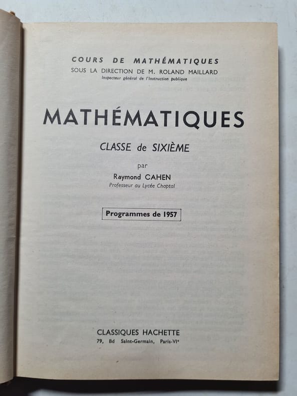 "Collection ""Mauguin"" Classification Dewey : 372.7-Livre scolaire : mathématiques"