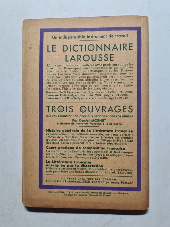 Livre. Librairie Larousse (Collection : Classiques Larousse), 1952.