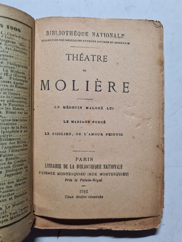 Editions d'art Albert Skira Les trésors de la littérature française Broché 1943 Neuf volumes in-8 (13,3 x 20,2 cm), brochés, imprimés 1943-1947, théâtre de Molière complet en 9 tomes, 298, 254, 259, 273, 232, 313, 313, 184, 347 pp. ; fines pliures au dos, brunissures aux coiffes, dos et bords des plats un peu brunis sur certains volumes, bon état général. Livraison a domicile (La Poste) ou en Mondial Relay sur simple demande.