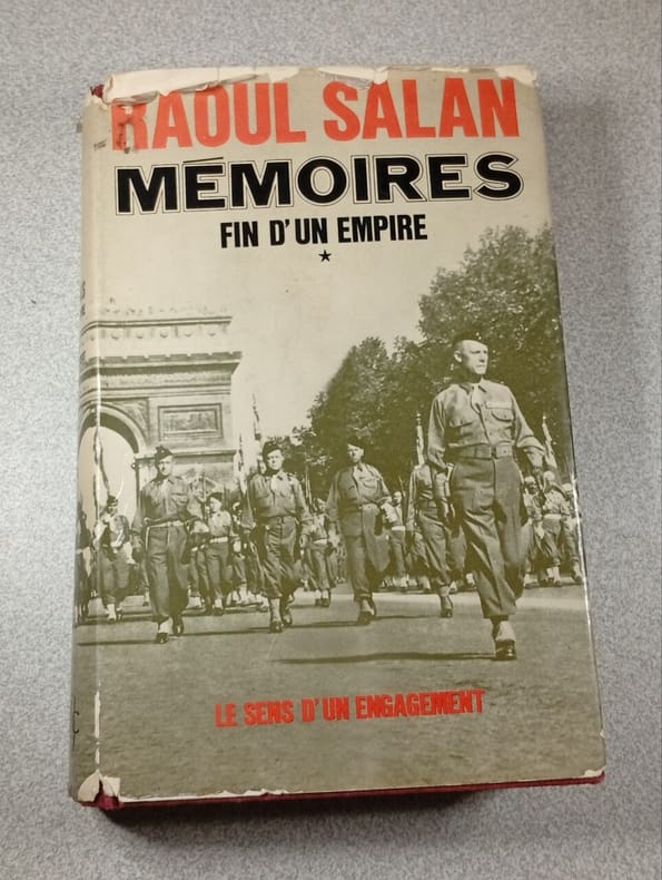 Complet en 4 volumes : I. Le sens d'un engagement (juin 1899 – septembre 1946) – II. Le Viêt-minh, mon adversaire (octobre 1946 – octobre 1954) – III. Algérie française (1er novembre 1954 – 6 juin 1958) – IV. L'Algérie, de Gaulle et moi (7 juin 1958 – 10 juin 1960). — "Dans le premier volume de ses Mémoires, le général Salan, a retracé ses premières années d'Indochine de 1924 à 1937, alors qu'il était jeune officier au Laos et au Tonkin, ainsi que les affrontements diplomatiques et militaires qui, entre octobre 1945 et septembre 1946, ne firent que retarder l'ouverture de la guerre en Indochine du Nord où il commandait le C.E.F.E.O. Il ne devait pas cesser, ensuite, d'être impliqué dans le conflit ; aux plus hautes responsabilités, puisqu'il fut l'adjoint du général de Lattre et exerça le commandement en chef par intérim à deux reprises, notamment de novembre 1951 à mars 1953 ; et jusqu'à la fin, puisqu'il retourna en Indochine en juin 1954, comme adjoint du général Ely, diriger les opérations d'évacuation du Nord. Ses souvenirs intéressent avant tout l'histoire militaire proprement dite et composent une chronique vivante des activités du haut et des principales opérations. De l'offensive sur Caobang et Bac Kan à l'automne 1947 jusqu'à l'opération « Auvergne » dans le delta du fleuve Rouge en juin 1954, celles-ci sont toutes relatées, à l'exception de Dien Bien Phu. L'exposé des plans de bataille et de leurs développements sur le terrain est détaillé, et on le suit facilement grâce aux nombreux croquis qui le résument. Il est complété par de nombreux extraits de documents et de officiels dont l'auteur fut le signataire ou le destinataire. Le témoignage est à classer parmi les sources de l'histoire militaire de la guerre d'Indochine. (...) En dehors même de son intérêt pour l'histoire militaire, ce deuxième volume de Mémoires, témoignage « de l'intérieur » sur la vision des hauts responsables français en Indochine, n'est pas à négliger." (Daniel Hémery, Revue française d'histoire d'outre-mer, 1973, à propos du tome II)