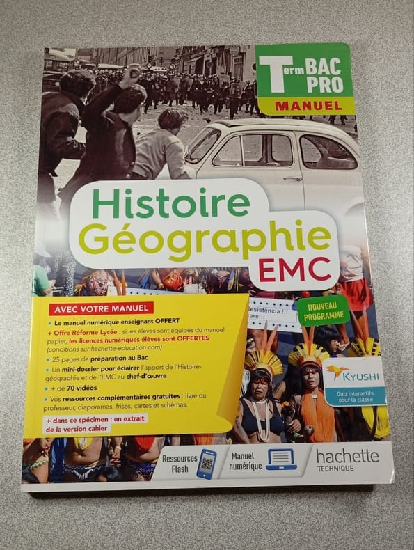HACHETTE TECHNIQUE. 20214. In-4. Broché. Bon état, Couv. convenable, Dos satisfaisant, Intérieur frais. 191 PAGES illustrées en couleur + couverture rempliée dont les rabats sont illustrées de cartes et frise chronologique. . . . Classification Dewey : 372.89-Livre scolaire : histoire / géographie