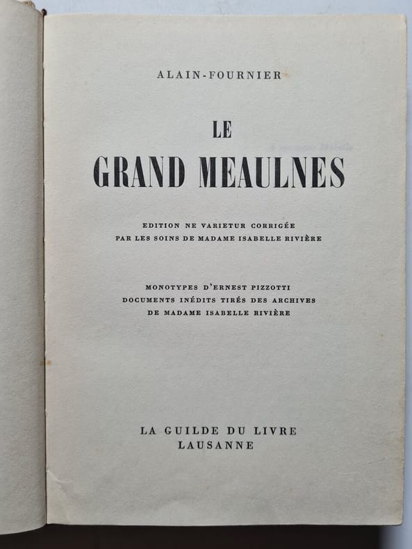 Éditions G. P Sans date. Le Grand Meaulnes raconte l'histoire d'Augustin Meaulnes un adolescent mystérieux qui arrive dans un village et bouleverse la vie du narrateur François Seurel. Le récit suit la quête obsessionnelle de Meaulnes pour retrouver un domaine enchanté et une jeune femme rencontrés lors d'une aventure onirique explorant les thèmes de l'adolescence des rêves perdus et de la nostalgie