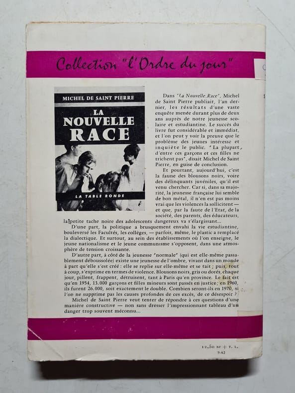La violence dans la rue et dans les facultés sont déjà soulignée par Michel de Saint-Pierre en 1962. Son analyse est pertinente: laxisme de l'Etat, des parents, des éducateurs et opposions idéologiques dans la société. Elle demeure encore vraie aujourd'hui.