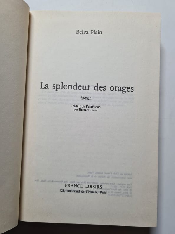 Editions France Loisirs 1984 1984. Belva Plain: La splendeur des orages/ Editions France Loisirs 1984 . Belva Plain: La splendeur des orages/ Editions France Loisirs 1984