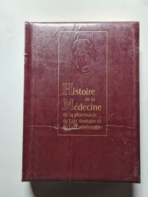 1977 Société française d'éditions professionnelles, médicales et scientifiques, Albin Michel, Laffont, Tchou, Paris, 1977-1980. 8 volumes in-folio relié plein simili de l'éditeur, dos lisse orné de filets et des lettres du titre, portrait en médaillon d'un médecin célèbre à chaque plat, coffrets, 400 pages environ par volume. Manquent les coffrets des tomes 1, 2, 6 et 7, quelques coiffes abîmées, néanmoins bon état de l'ensemble.