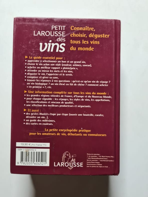 Larousse. 2005. In-8. Relié. Bon état, Couv. convenable, Dos satisfaisant, Intérieur frais. 960 pages. Texte sur deux colonnes. Contre-plats illustrés monochromes.. . . . Classification Dewey : 634.8-Viticulture, vin