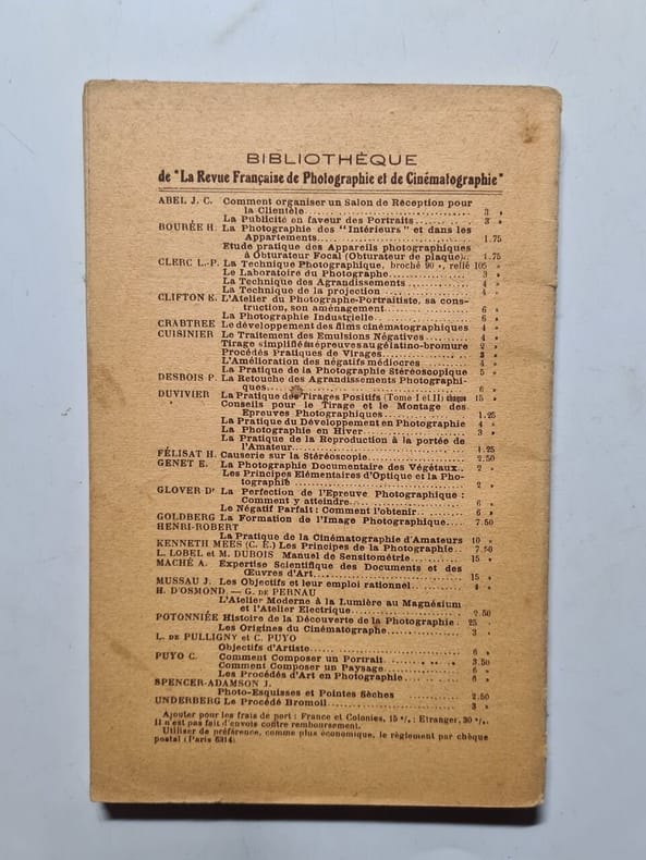 Bureau de la revue. 1er février 1920. In-12. Broché. Bon état, Couv. convenable, Dos satisfaisant, Intérieur frais. Paginé de 25 à 36. Quelques photographies en noir et blanc dans et hors texte. Léger manque a la page 35/36, page publicitaire et deuxième plat, sans altérer la lecture.. . . . Classification Dewey : 770-Photographie