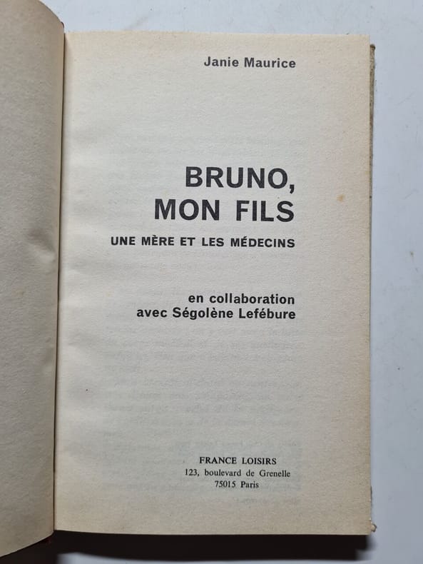 1975 1975. Janie Maurice: Bruno mon fils / France Loisirs 1975 . bon état