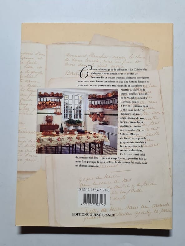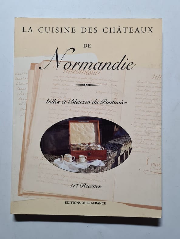 Coll. "La Cuisine des Châteaux", Rennes, éd. Ouest-France, avril 1998, EDITION ORIGINALE, in-4, cartonnage souple à rabats, couv. photos coul. éd., 128 pp., papier glacé, très nb. photos et reproductions de documents anciens en coul., index des châteaux, guide pratique, index alphabétique des recettes, Superbe livre sur la cuisine des châteaux de la Normandie. Chaque châteaux nous est présenté avec un historique, ses restaurations et surtout les recettes des propriétaires actuels. Superbe iconographie ancienne et actuelle. Très bon état