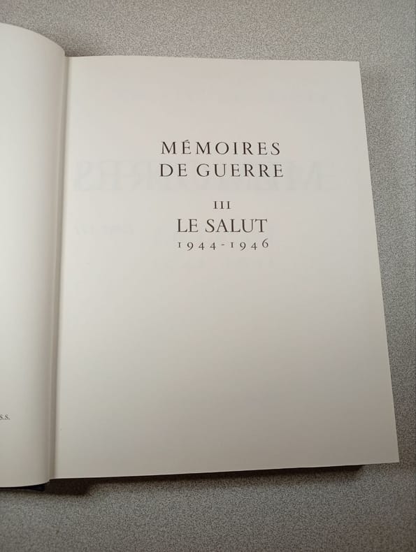3 volumes. Tome I : L'Appel, 1940-1942. Tome II : L'Unité, 1942-1944. Tome III : Le Salut, 1944-1946. Classification Dewey : 848-Ecrits divers, citations, journaux intimes, souvenirs, mémoires