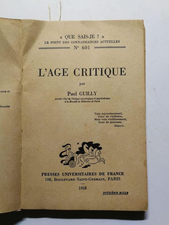 ---- PREMIERE EDITION FRANCAISE EN PARTIE ORIGINALE ENTIEREMENT REVUE PAR MARANON LUI-MEME : "Cette édition a été tellement refondue qu'on peut dire qu'elle a été écrite de nouveau... J'ai dû rénover ou modifier toute la partie doctrinale et réviser considérablement l'interprétation des faits...". (Préface de G. Maranon pour l'édition française) ---- BEL EXEMPLAIRE ---- "G. Maranon Y Posadillo, (1887/1960), fut l'un des pionniers de l'endocrinologie moderne. Il étudia les insuffisances surrénales, l'insuffisance thyroïdienne et le rôle des hormones génitales" ---- Bariéty & Coury pp. 742 et 754 ---- Théorie pluriglandulaire de la crise ménopausique - Le facteur ovarien - le facteur thyroïdien - Le facteur surrénal - Le facteur hypophysaire - Symptomes génitaux - Symptomes psychiques - Troubles du métabolisme - Symptomes des organes endocriniens - L'âge critique de l'homme - etc**3501/G1-3500/G1