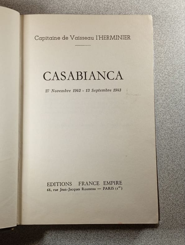 Editions France-Empire s.d. (vers 1955), in-12 carré broché, 317 p. (manque la jaquette, sinon très bon état) Première édition ; photos NB hors-texte. Celui qui fut le commandant du sous-marin "Casabianca" apporte ici son témoignage sur un des plus beaux faits d'armes français de la Seconde Guerre.