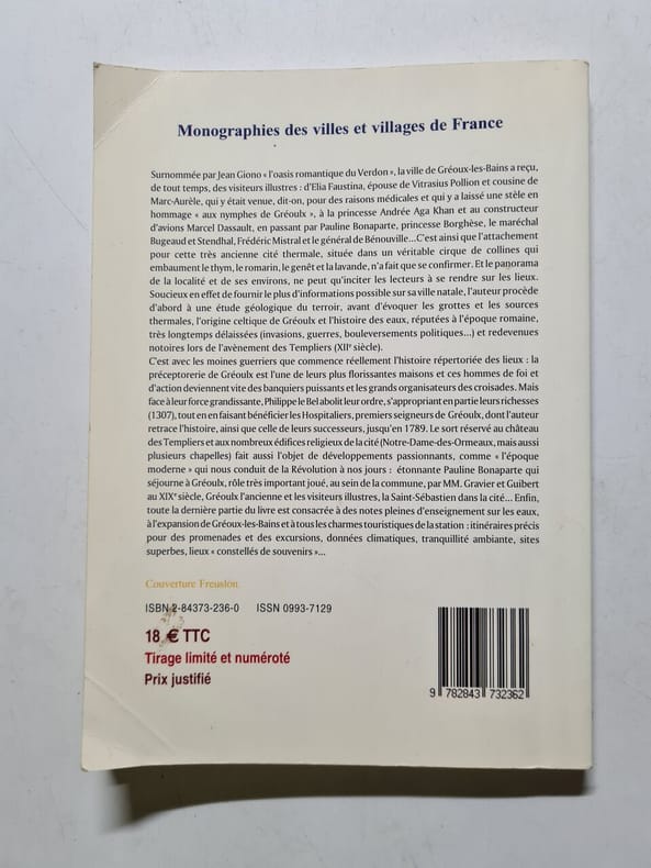 Établi au cœur de la Provence, sur un site dont les eaux thermales furent exploitées dès l’époque gallo-romaine, le château de Gréoux-les-Bains domine de sa puissante silhouette un village qui conserve, dans son parcellaire et son architecture, les traces de son évolution au cours du Moyen Âge et de l’époque moderne. L’auteure tente ici, par une analyse conjointe des sources d’archives, des données ponctuelles de fouilles et des vestiges monumentaux – avec une approche systématique relevant de l’archéologie du bâti -, de répondre à la problématique posée par les origines et les ambitions qui ont présidé à la réalisation d’un château démesuré par rapport à son contexte géographique et humain. Ainsi sont retracées l’histoire – jusqu’à présent méconnue – du château, replacé dans son environnement peuplé, celle de ses commanditaires et de ses propriétaires successifs, ainsi que l’évolution architecturale de l’édifice. Voir le sommaire sur photos jointes.