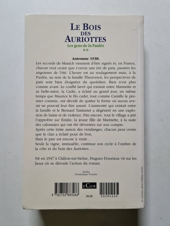 TOME 1 : LA SAISON DES VENDANGES - TOME 2 : LE BOIS DES AURIOTTES - TOME 3 : LES TEMPES D'ORAGE . Classification Dewey : 840.092-XXI ème siècle