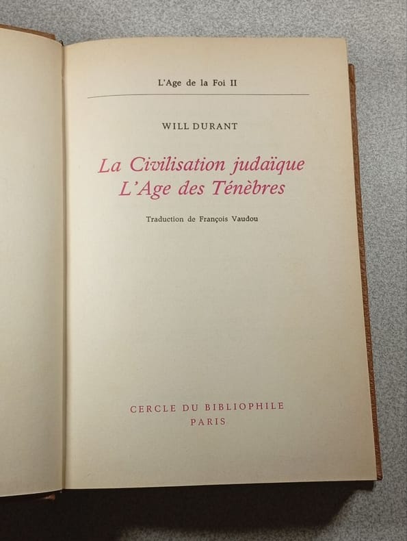 Geneve, Cercle du bibliophile edition rencontre, 1966; in-8, 406 pp., cartonnage de l'éditeur. L'age de la foi: la civilisation judaique l'age des ténèbres.