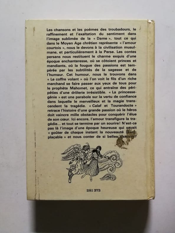 Le cabinet des fées tome 14. Contes Persans traduits en françois par PETIS de La CROIX. In 12 demicuir marron pièce de titre et tomaison cuir rouge. Faux-titre, titre 563 pages, 1 page de table 2 gravures hors-texte de MARILLIER. Bar de Manget Genève 1787. Mouillures importantes en début de volume, angle supérieur droit en fin de volume, ensemble en état moyen