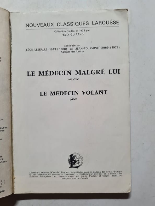 Editions Larousse 1971 1971. Molière: le médecin malgré lui le médecin volant/ Nouveaux Classique Larousse 1971 . Molière: le médecin malgré lui le médecin volant/ Nouveaux Classique Larousse 1971