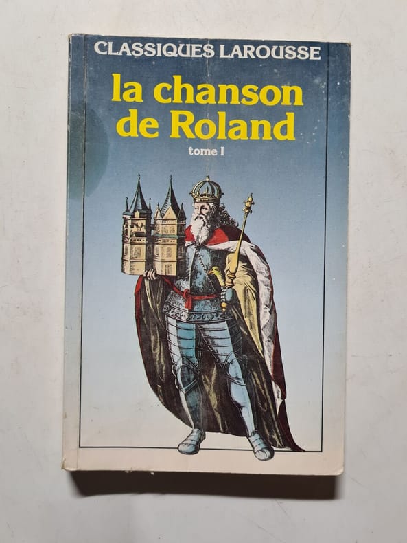 mb.Club du livre Paris, Philippe Lebaud éditeur, 1962. Couverture rigide.les 2 livres sont en tres bon etat et sont dans un coffret, ce dernier est legerement frotte, in-4 , le coffret c'est un emboitage avec le dos de 2 livres. Reliure du livre principale est en pleine cuir marron ornée de cinq clous en laiton sur chacun des plats et d'un décors de croisettes et de losanges entrelacés dans le goût médiéval. Dos à 5 faux nerfs, portant le titre en lettres dorées (19x24 cm)pour les chanson de Roland et l'autre livre a une reliure en pleine cuir marron portant les armoiries de Kenelm Digby sur le plat supérieur. Dos muet à 4 faux nerfs (12x18 cm)pour le manuscrit d'Oxford 72 feuillets. Traduction originale du manuscrit d'Oxford et commentaires de Louis-Robert Plazzolles. L'ouvrage de la chanson de Roland a des enluminures de Jean Gradassi pleines pages. Tranche supérieure dorée. Avec un FACSIMILE du manuscrit de la Bodleian Library d'Oxford reproduisant fidèlement toutes les particularités du manuscrit (irregularités des feuillets, trous.) Le tout conservé dans un LUXUEUX EMBOITAGE legerement abime reproduisant la forme de deux livres factices reliés en peau marron et portant les titres "La chanson de Roland" et "Le manuscrit d'Oxford". Le manuscrit d'Oxford est le plus ancien manuscrit de chanson de geste qui nous soit parvenu (XIIème siècle). Il s'agissait probablement d'un modeste volume à l'usage d'un jongleur chargé de réciter ou chanter ces vers. Il fut offert au XVIIème siècle à la Bodleian Library par Kenelm Digby, philosophe brillant et fantasque, et ami de Descartes.photos possibles