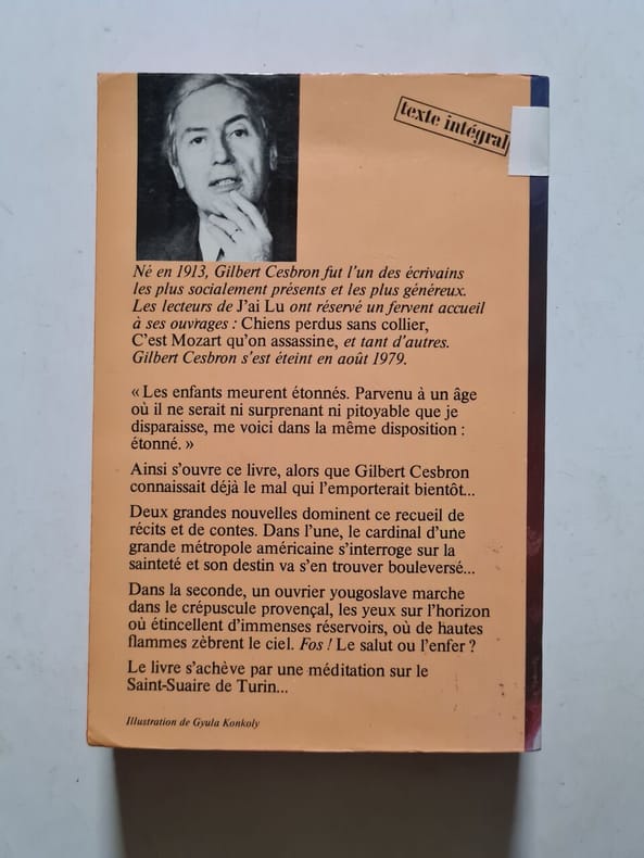 Jaquette orange, titre blanc ; couverture de papier glacé blanc, titre en bleu ; 296pp ; "Essai se terminant sur une longue méditation, devant un certain visage : celui du christ"